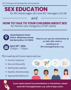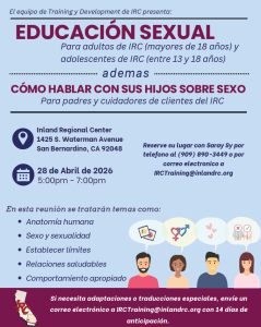 Sex Education for IRC Adults 18+ & Teenagers 13-18, San Bernardino